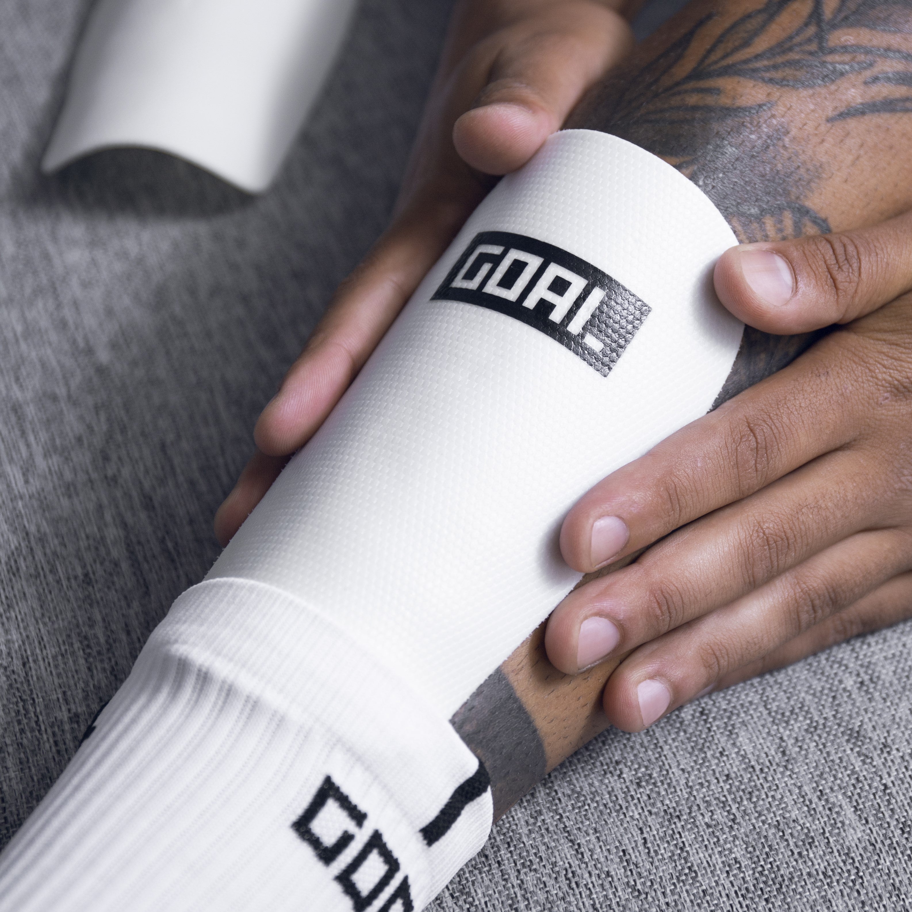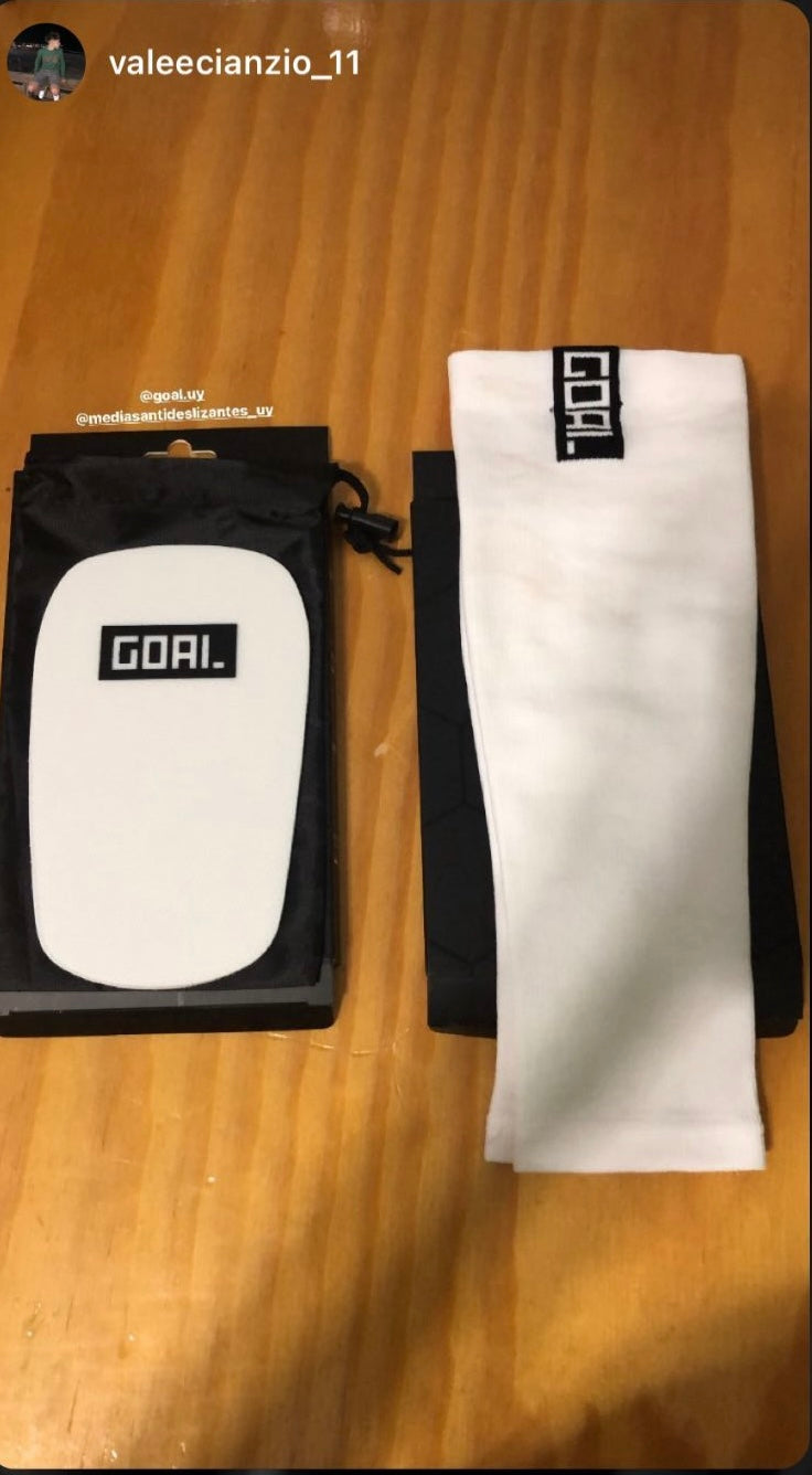 O material e chamado "GOAL TPU", e um material especial produzido pela GOAL, que permite que a caneleira se ajuste à perna de qualquer pessoa em alta temperatura.
