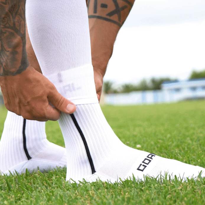 Devido à sua compressão, estas meias sem pés são a melhor opção do mercado para apoiar a caneleira.